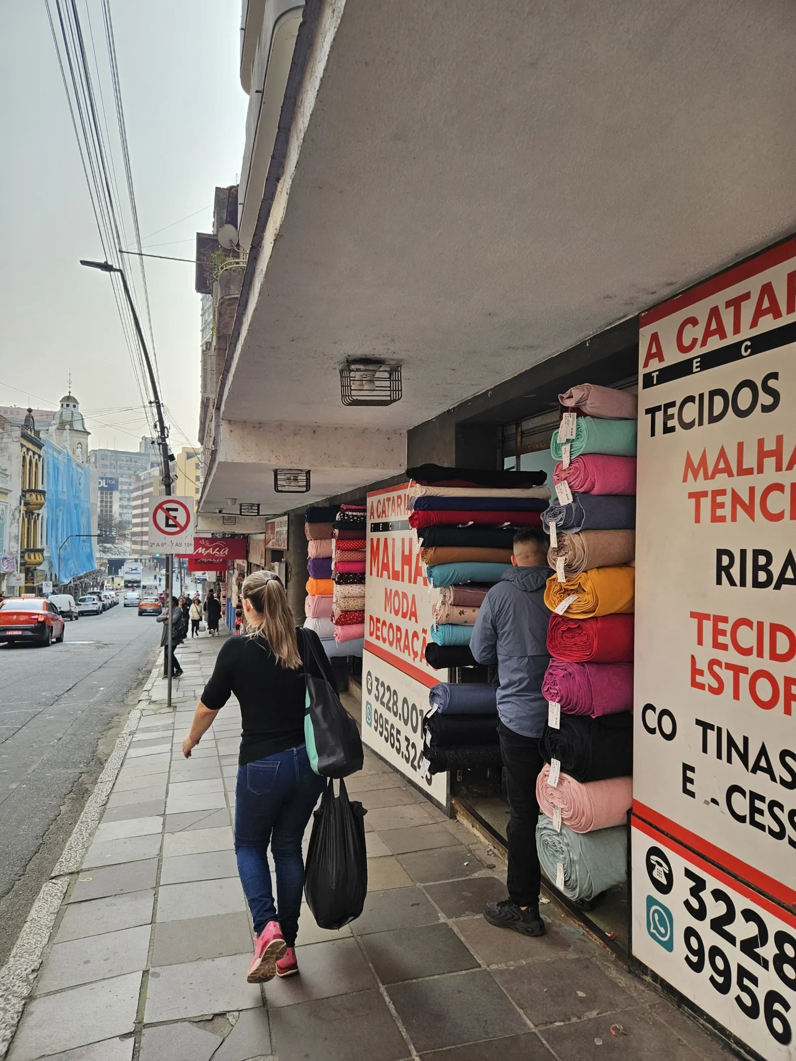 Onde hoje está a rua Pinto Bandeira, existiu uma grande pedreira que chegou a ser explorada lá por 1890. Se antes tudo era cinza e marrom por ali, agora não faltam cores! E elas vêm das vitrines dos 17 armarinhos que se espalham no trecho entre a Av. Voluntários da Pátria e a Rua Alberto Bins. Não podemos negar que a maioria da clientela que encontramos nos balcões é de mulheres. Há costureiras, artesãs, estilistas e até noivas procurando os itens para o vestido dos sonhos. Esbarramos também com alguns homens, a maioria motoboys com listas de compras para seguir. E te liga na dica: tu encontra desde tecidos por R$ 2,99 até rendas importadas que custam R$ 1.200,00 o metro. A diversidade de itens é gigantesca para atender consumidoras exigentes. Percorrer a quadra pode levar horas, já que são milhares de opções de tecidos, lãs, linhas, rendas, miçangas, paetês, agulhas, tesouras, botões, zíperes, elásticos, pérolas, etc. Mas se tu estiver com pressa, fica tranquilo porque os atendentes agilizam o serviço!