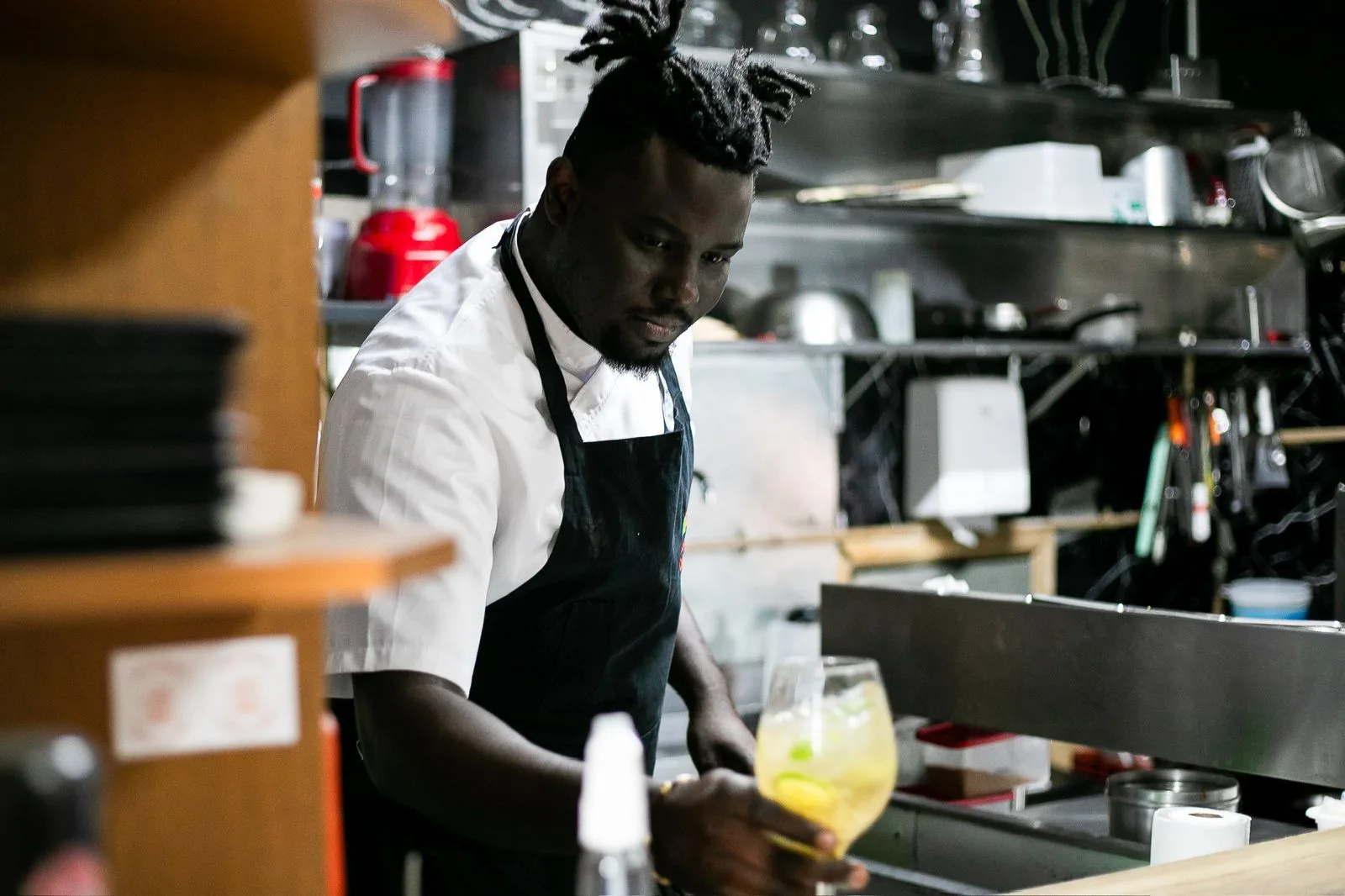 O verdadeiro sabor de países como Senegal, África do Sul e Angola, tu encontra na esquina da Nova York com a Berlim. Só em Porto Alegre mesmo, hein!? Essa mistura de culturas é o que torna nossa cidade ainda mais criativa e vibrante. E cativou o senegalês Sidy, que após rodar o mundo estudando gastronomia, escolheu a capital do Rio Grande do Sul como morada. O estabelecimento ganhou uma decoração cheia de referências da cultura africana, mas o que nos encantou mesmo, foi o carisma do chef, que além de preparar pratos surpreendentes e muito gostosos, tira sempre um tempinho para trocar uma ideia com os clientes. O que descobrimos é que muitos alimentos que estamos acostumados têm influência africana – como o bolinho de chuva, por exemplo, que tem um primo no Senegal, chamado Beignet, e é coberto com mel. O Sidy nos explicou que uma característica muito forte na comida dos países da África é ter ingredientes sempre frescos. A apresentação impecável dos pratos é um toque de quem entende de gastronomia. Os porta-retratos nas paredes estampam momentos da família do anfitrião e tornam o ambiente mais acolhedor.