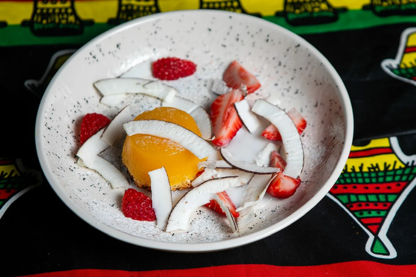 Além do Beignet, adoramos a entrada de antepasto com legumes e especiarias, chamada Chakalaka – tradicional da África do Sul. Tenho certeza que os gaúchos vão amar o Thiébou Yap, que é um arroz temperado, com carne de cordeiro e legumes – uma versão senegalesa do nosso amado carreteiro. Diretamente de Angola, Muamba de Galinha – o mais surpreendente de todos e incrivelmente delicioso. Tu sabia que o Quindim é adorado por lá? Mas não sozinho! Acompanhado de lascas e leite de coco e morango. Deu um tchan, viu? Outro item que conhecemos bem e é estrela no menu de sobremesas é o Fubá! Para finalizar, as bebidas típicas são um capítulo à parte. O hibisco brilha muito e o gengibre também.