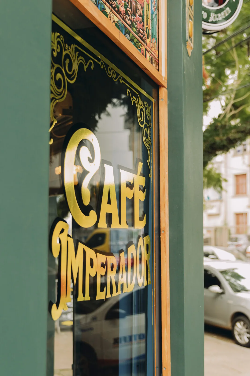 O Café Imperador nasceu da paixão de seu proprietário pela história do Brasil e pelo nosso café de qualidade. Foi juntando o próprio acervo de relíquias com itens garimpados que a decoração do espaço nasceu. Nas paredes, estão documentos originais da época do Império e uma cornija de lareira enorme usada como adorno na abertura que leva a um pequeno salão lateral todo azul remetendo à cor da família Orleans. Os vidros da fachada, do prédio de 1914, foram decorados com adesivos que imitam vitrais e contam a história do café desde o grão até o momento de ser saboreado.