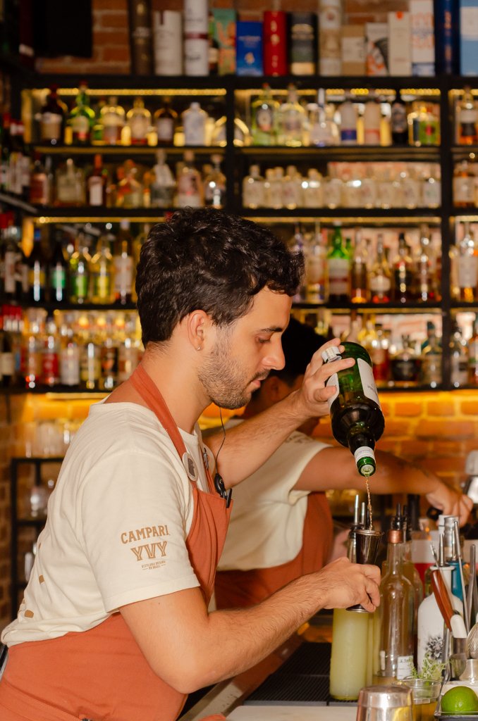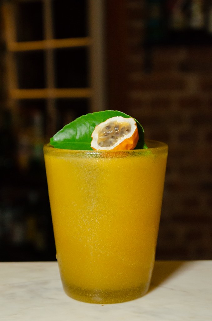 O ambiente do segundo andar foi todo criado para dar destaque ao balcão de bebidas, que se estende de lado a lado. Ali tu pode degustar um drink autoral ou clássico enquanto aprecia a equipe elaborando as bebidas. Há muitas referências a itens tipicamente gaúchos. Quem já conviveu algum tempo com um porto-alegrense, por exemplo, ouviu certamente a expressão “me caiu os butiá do bolso” que significa ser ou estar surpreso. Pois o Fred Muller colocou essa fruta azedinha, que vem da árvore símbolo do Rio Grande do Sul, em duas de suas criações. O Lo de Lori com Mezcal tem tequila, butiá, tomate, limão Tahiti e sal. O nome é uma homenagem à Lori, fornecedora de polpa de butiá, da cidade de Crissiumal. Voltando aos butiás, que aqui não caem do bolso e sim nos copos (risos), outro drink criado com a fruta é o Butiazinho que leva whisky, licor peachtree, butiá, xarope de maracujá e limão-siciliano. A bebida vem com um delicado (mini) maracujá do mato, fruta típica do Rio Grande do Sul e bem difícil de encontrar hoje em dia. E ainda encontramos outras muitas influências sulista nos coquetéis e na carta de vinhos com rótulos brasileiros, argentinos e uruguaios. Vale dar uma olhadinha na seleção de vinhos laranjas.