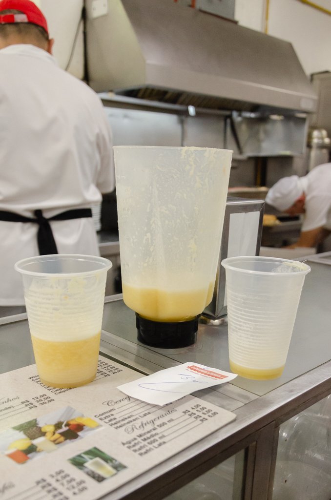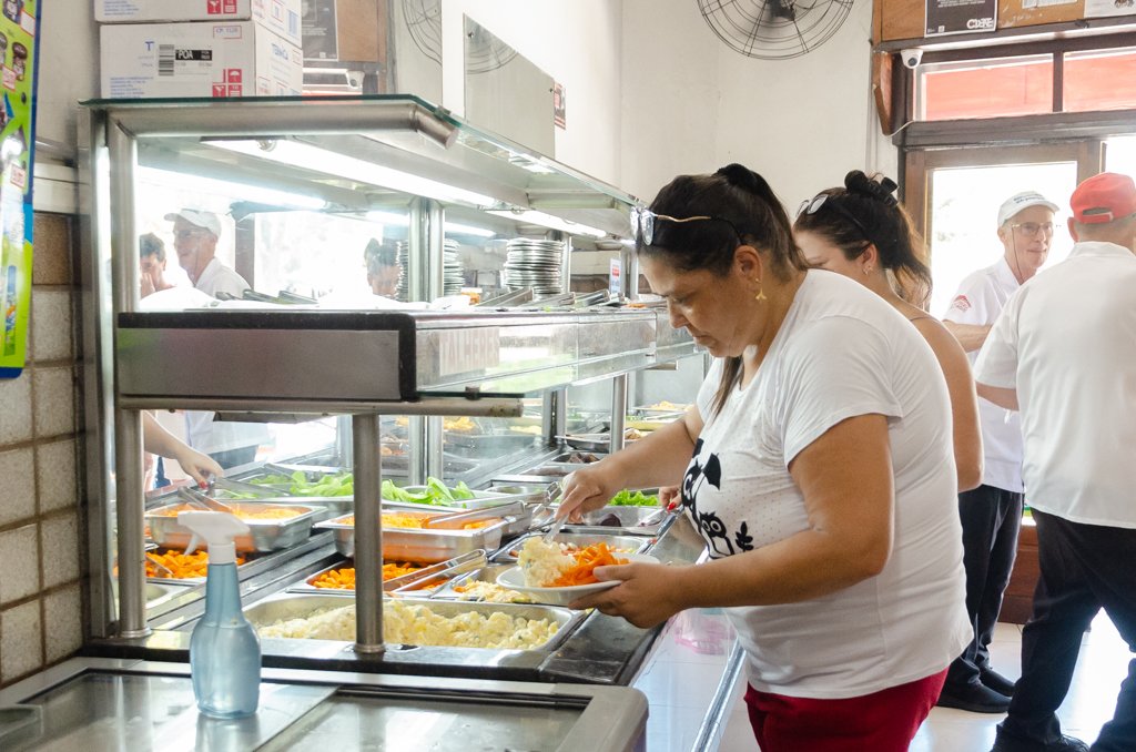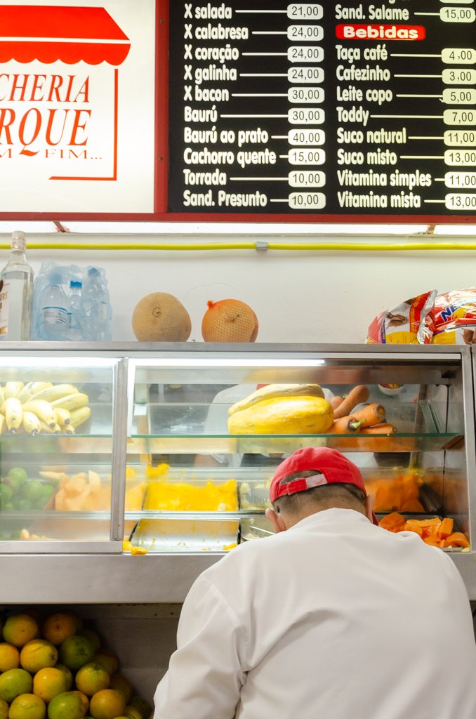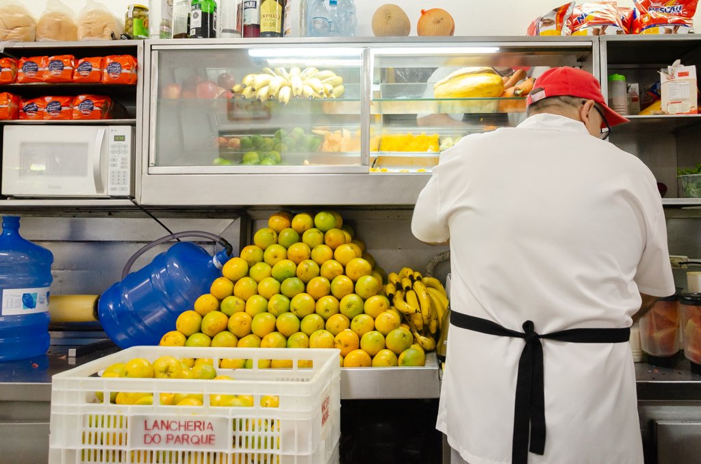 Assim que entra no local, tu já vê o ambiente característico. Do lado esquerdo, um balcão grande que se estende por quase todo cumprimento. À direita, o bufê, que serve de almoço a janta. As mesas ocupam o espaço central. Sentados ali, ou mesmo no balcão, dá para garantir o sanduíche mais conhecido pelos gaúchos, o xis. Tem variados sabores, mas o mais pedido na loja é o de coração. Há também outras opções como salgados, torrada – como chamamos o misto quente -, sanduíche, cachorro-quente e bauru. Se a fome é maior, dá para pedir o famosão filé à parmigiana, ou outros pratos prontos como bife à milanesa, risoto com fritas e o carreteiro (que é outro prato bem gaúcho, basicamente feito com arroz, carne de gado e muitos temperos). Para acompanhar, pode até pedir uma cervejinha ou outra bebida, mas o tradicional mesmo é o suco. Natural, ele é feito ali na hora, na tua frente, e servido com todo o encanto da jarra de liquidificador (risos). Dá para pedir de uma única fruta ou misturar a tua escolha.