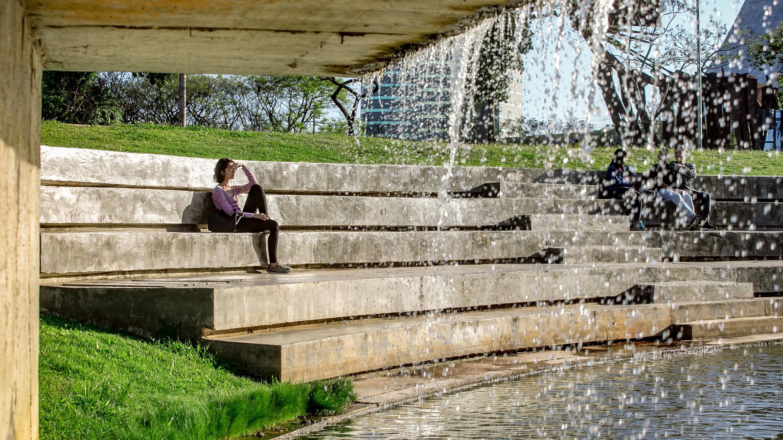 O barulhinho da queda d’água entre os dois lagos ajuda a relaxar. Tu também pode sentar na grama, ler um bom livro, fazer um piquenique ou meditar. Mas se teu negócio é ficar em movimento, não tem problema. O espaço de 18 mil m², também é maravilhoso para praticar uma caminhada, uma corrida, e até mesmo andar de bici (sim, é verdade, gostamos de abreviar palavras). Aliás, há vários trechos de ciclovia pela região, que é plana e convidativa à prática. E se tu estiver pedalando pela volta e quiser dar uma parada ali, tu pode estacionar a bike em um dos paraciclos do local. O largo é um passeio para toda família e todas as idades. A criançada ama curtir o espaço e os cães também!