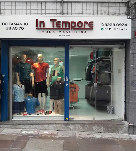 A In Tempore é uma loja dedicada à moda masculina. Atende a uma ampla gama de tamanhos, desde o P até o GG e Plus Size.