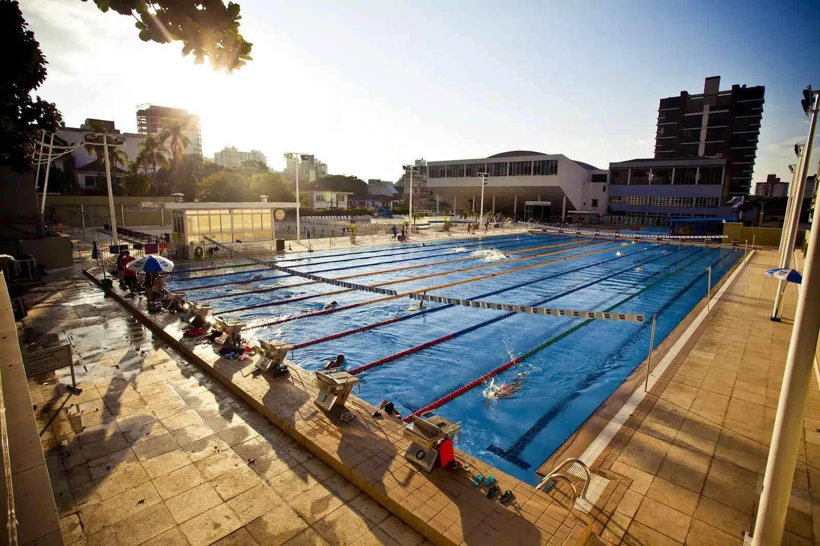 - Piscinas de 50 e 25m, para competições e treinamentos, nas especificações de FINA