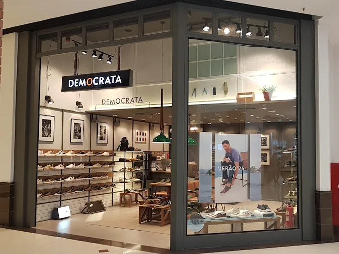 Lojas Democrata é especializada em sapatos masculinos e oferece diversas opções em couro. Além dos sapatos, a loja dispõe de cintos, necessaires e sandálias.