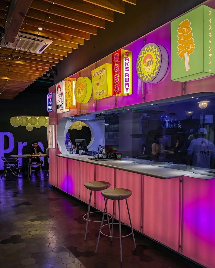 Nikō Sushi Club, japonês retrofuturista. Oferece um ambiente único e descomplicado para os amantes da culinária japonesa. Com cardápio enxuto ,qualidade e preços acessíveis.
