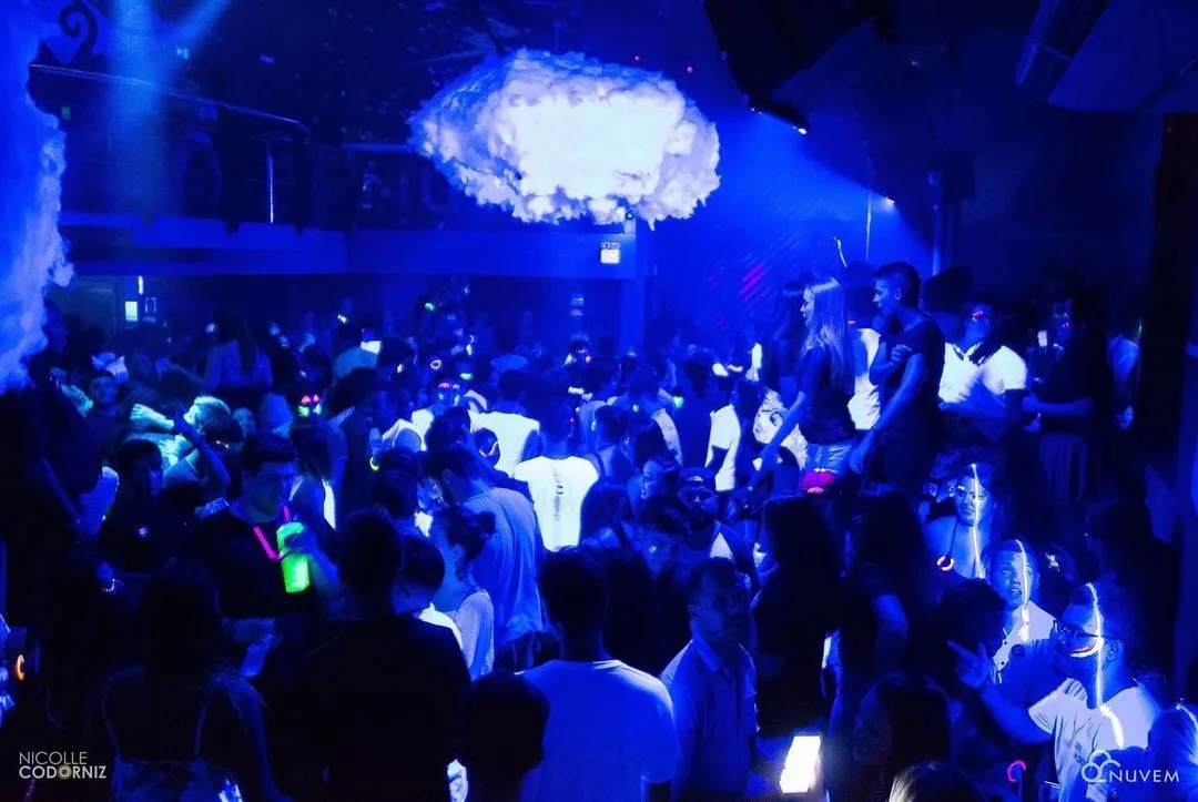 Bailes de funk e outras festas temáticas, mais bebidas alcoólicas, em casa noturna com clima jovem e animado.