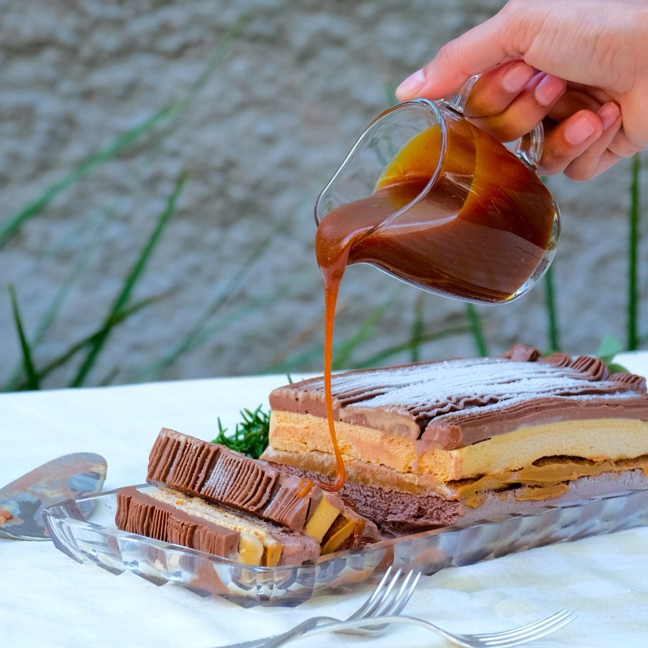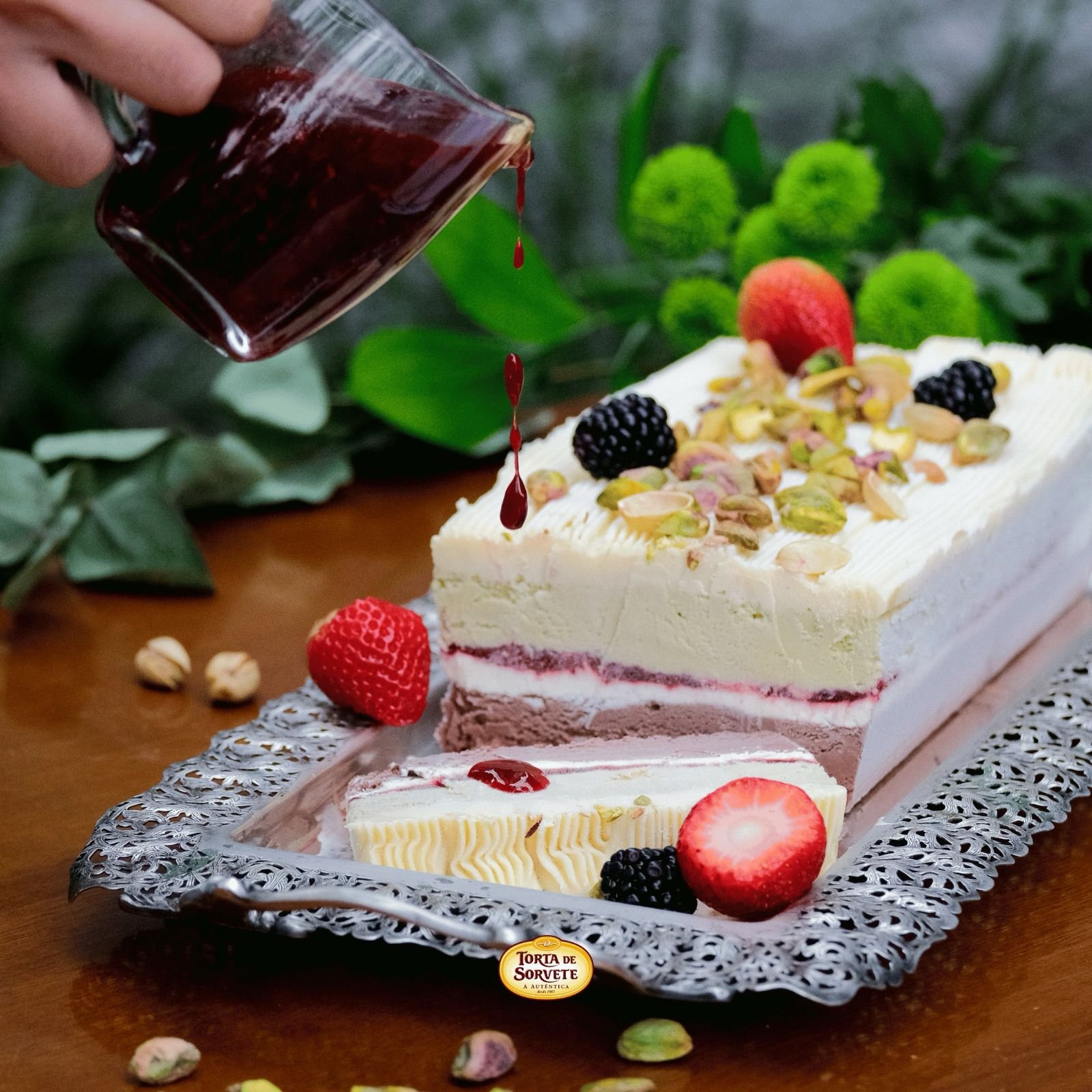 Feita com um sorvete cremoso de baunilha, coberta com merengues envoltos em chocolate e uma calda de chocolate morna, a torta de sorvete nasce com a combinação da refrescância do sorvete e a fartura de uma torta.